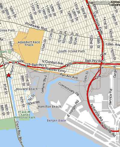 Alpha was in a backyard, relaxing, and looking up at the southern sky, watching the planes takeoff from JFK on the morning of Nov. 12th. Alpha was at XXXXX Avenue and 1 block east of Cross Bay Blvd. If you look at the attached picture of a map of the area (with Alpha's location marked with a red X on the far left), Alpha was just a little more than 1 mile north of JFK. Flight 587 crossed Alpha's line of sight just as it was nearing and passing Cross Bay Bridge/Blvd; initially the plane looked just fine. After a short while, Alpha noticed a white and yellow explosive flash appear behind the right wing in the fuselage. Alpha knows what ordinance explosions look like, and to Alpha that's what this appeared to be. The flash was followed by a stream of smoke. This appears to be the stream of smoke John and Jackie Power spotted at least 5 seconds before the plane spun violently, and then began its descent into Belle Harbor. Prior to that initial flash, the flight of 587 seemed perfectly normal.